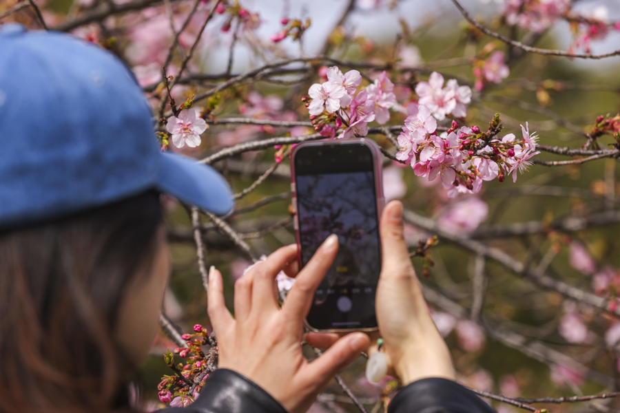 马年春节小长假最后两天,申城迎来晴好天气,气温攀升至20摄氏度以上。和煦春风为城市添上浓浓春意,市民纷纷走出家门,踏青出游。沪上各大公园成为热门打卡地。各大公园推出赏花、非遗互动、生肖主题体验等丰富新春活动。早樱、梅花等早春花卉次第含苞,处处洋溢着春日生机。