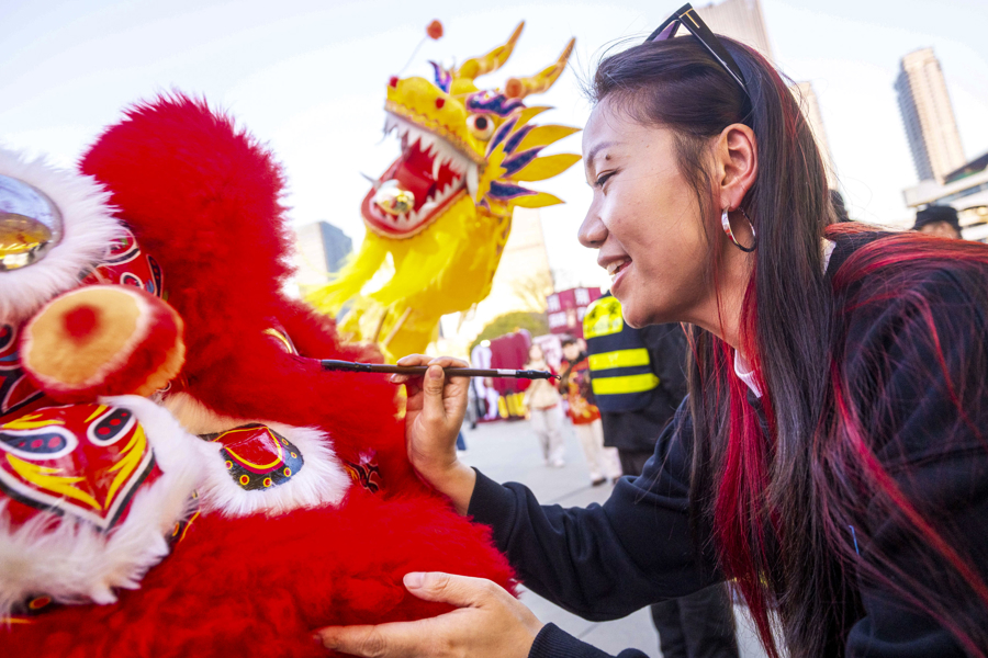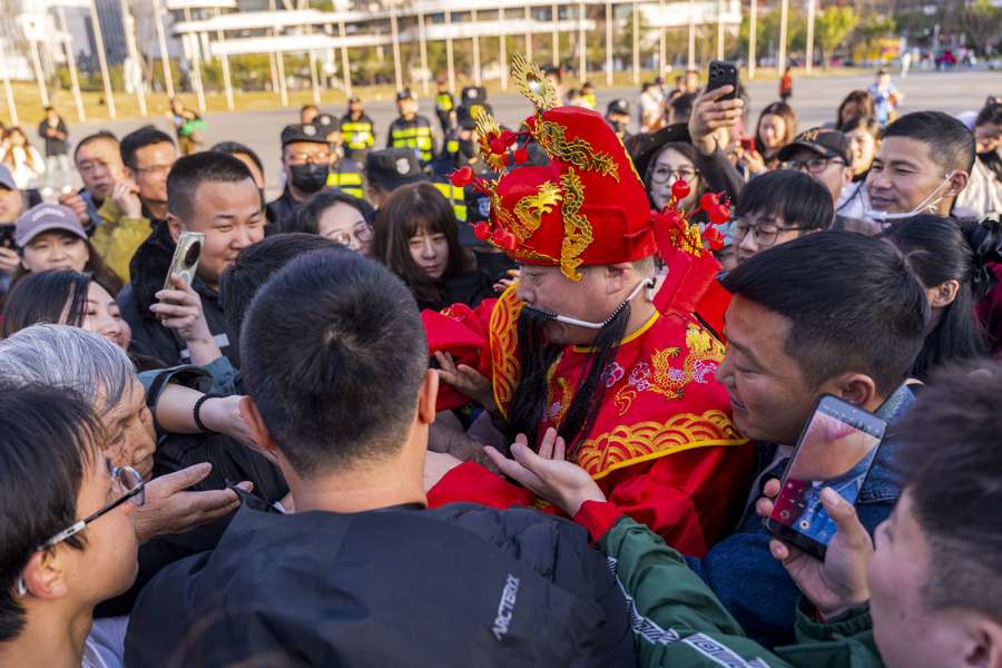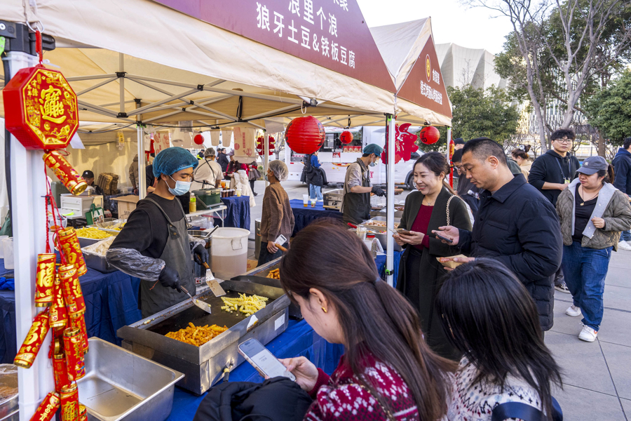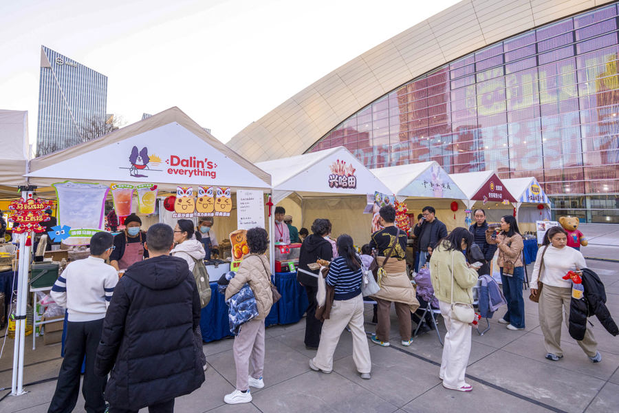 活动现场,锣鼓喧天的舞龙舞狮轮番上演,财神爷快闪送福,新春氛围感拉满;五大主题集市汇聚网红美食、非遗手作、宠物友好体验等多元内容。