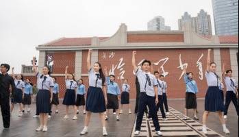 国庆前夕,恰同学少年广场人潮涌动。人群中,一句铿锵有力的“眼前的江水告诉我,每一粒沙土,都镌刻着燎原的星火”引起大家注意。随后,几位身穿民国校服的青年学生陆续走出,接力诉说“恰同学少年”的青春意气,随着人群聚集红腾网,更多学生加入进来,高声齐诵《少年中国说》(节选)。